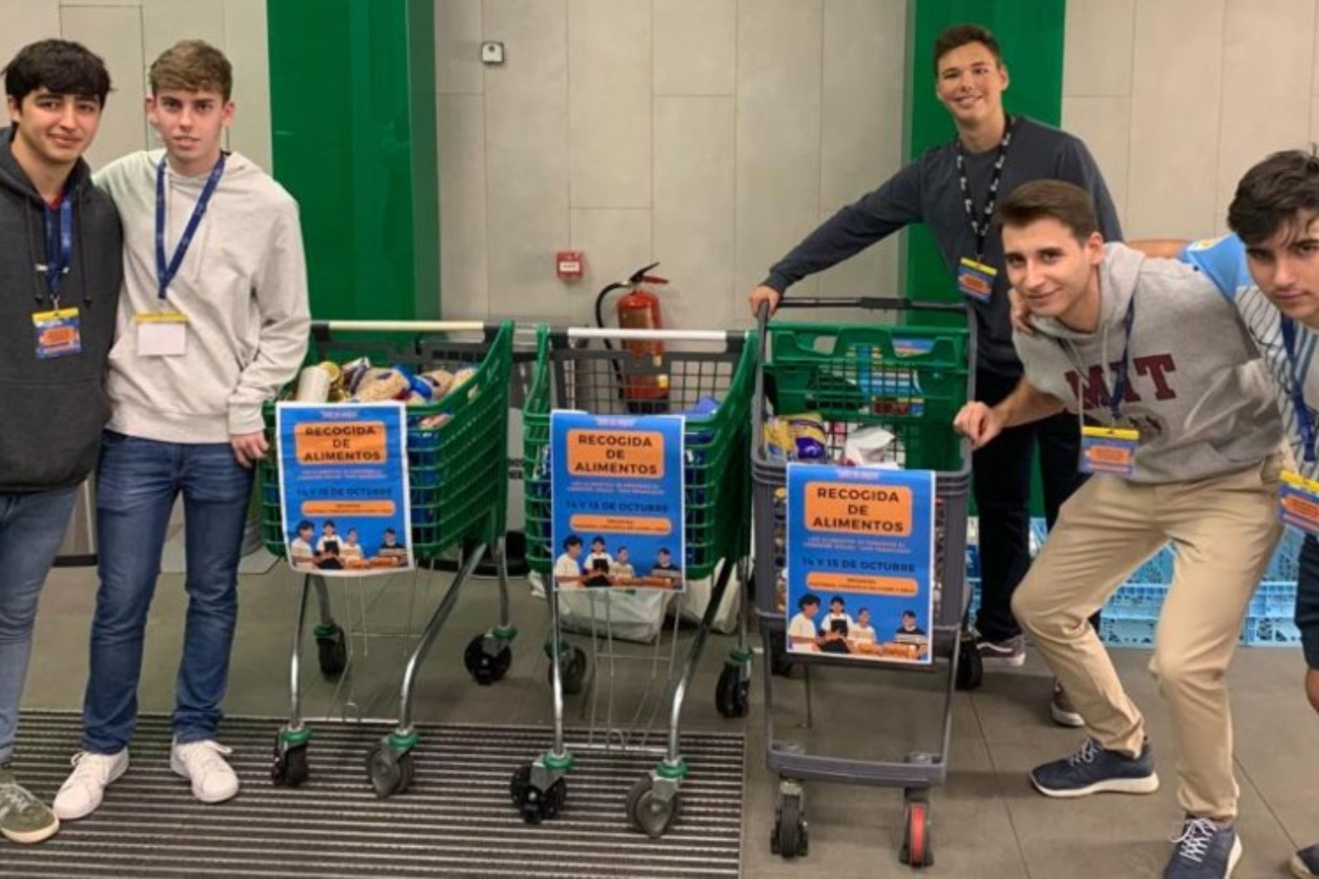 Los colegiales del Pío XII participan activamente, junto a otros trece colegios mayores de Madrid, en la CAMPAÑA DE RECOGIDA DE ALIMENTOS promovida en varios supermercados de la zona.